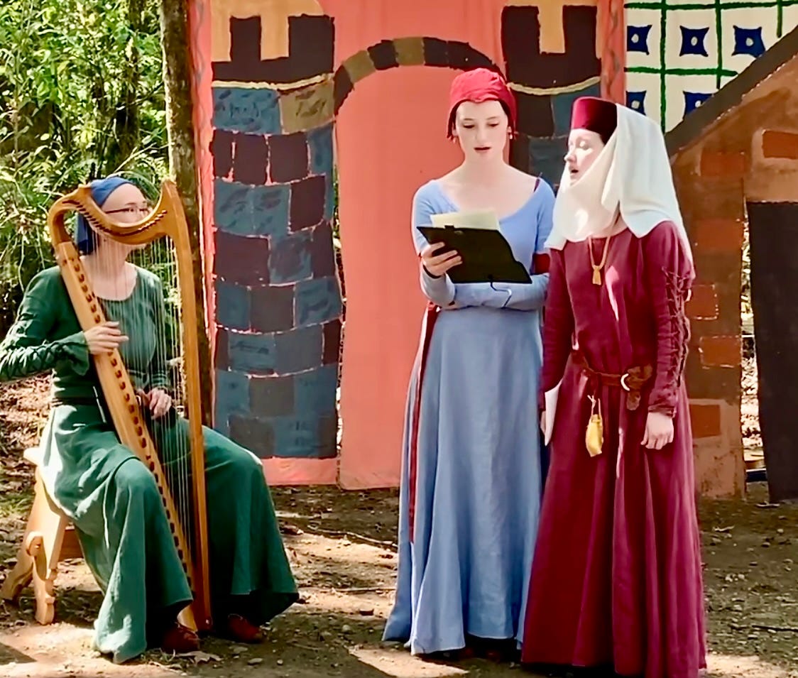 What does this topic have to do with my overall theme here in my newsletters about bringing underrepresented musical styles into the lives of young people? In my experience, students who need more autonomy and choice seem to be among the most likely to find a voice in traditional music or historical performance. They may feel enlivened by the chance to explore new things in the way I did recently with the harp, and also simply by doing something unusual. A student of mine switched from violin to viola da gamba a few years ago when he found a greater sense of freedom and DIY self-empowerment with it — both the physical instrument and its less-trodden pedagogical landscape.